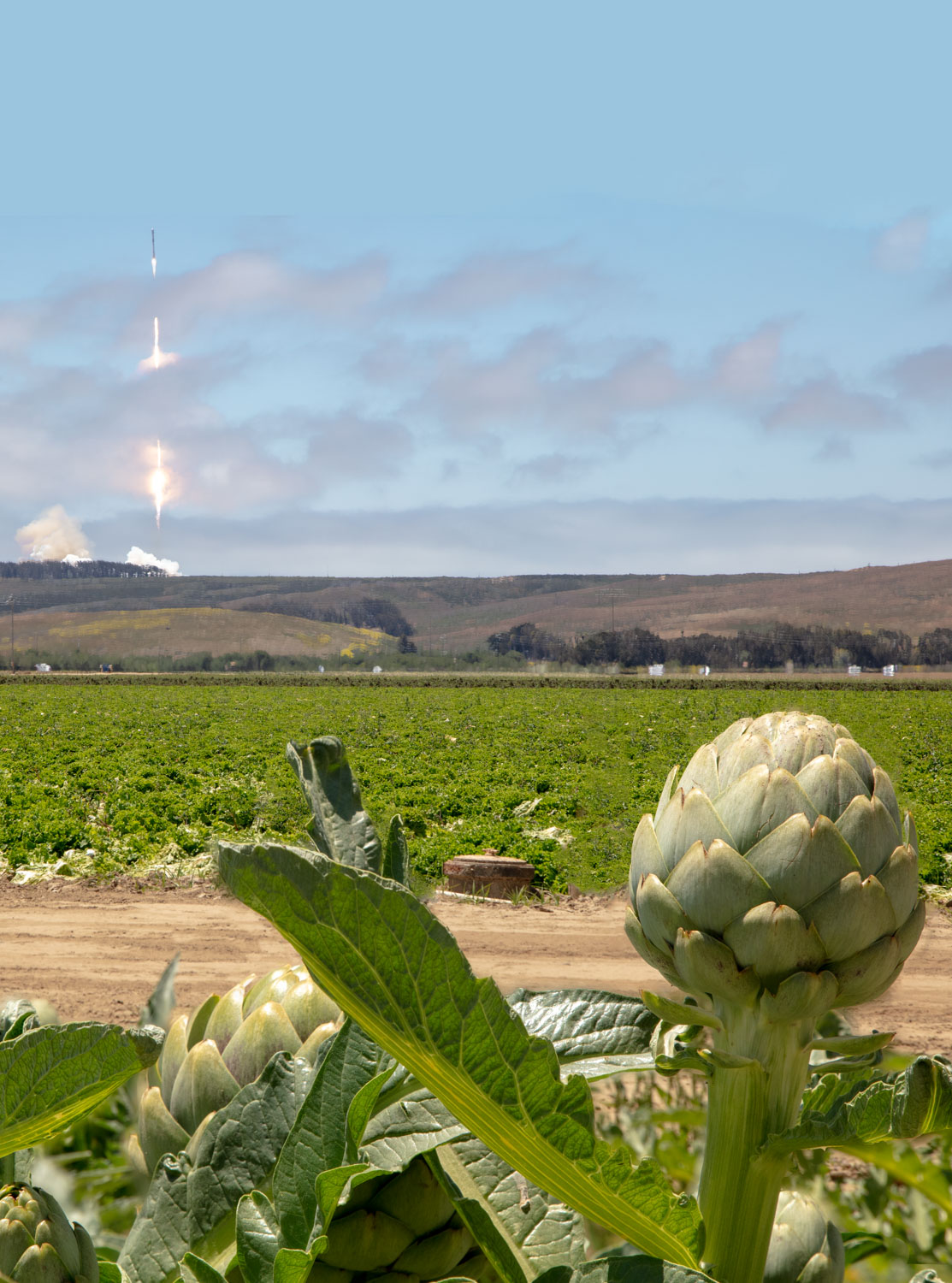 The SpaceX photo is from my ranch. For me very unique. I do not grow artichokes with a good vantage. I had to do a focus stack (carefullY) then do the launch. Then used multiple exposures to get the long trail. Then the missile itself was in focus. I hope when i blow it up it does not "fall apart" since some will look closely.