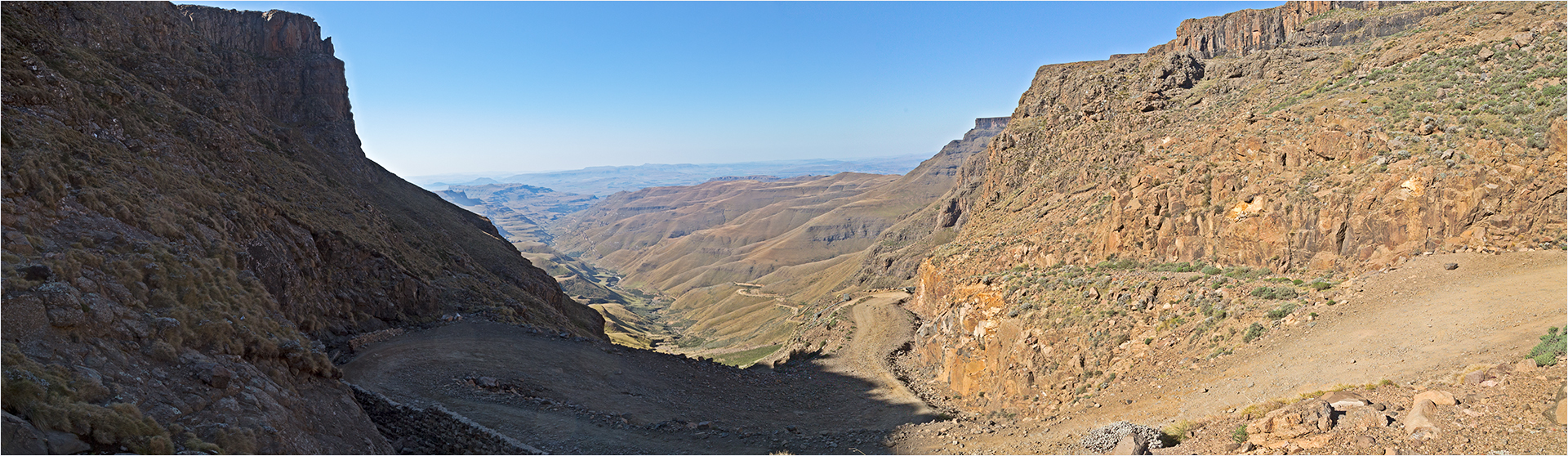 From the top of Sani pass, looking from Lesotho back into KZN province (South Africa). Pano from 3 images and worked on to lessen the harsh shadow with Dan Margulis' heavy hammer treatment and of course our friend CM to finish it off