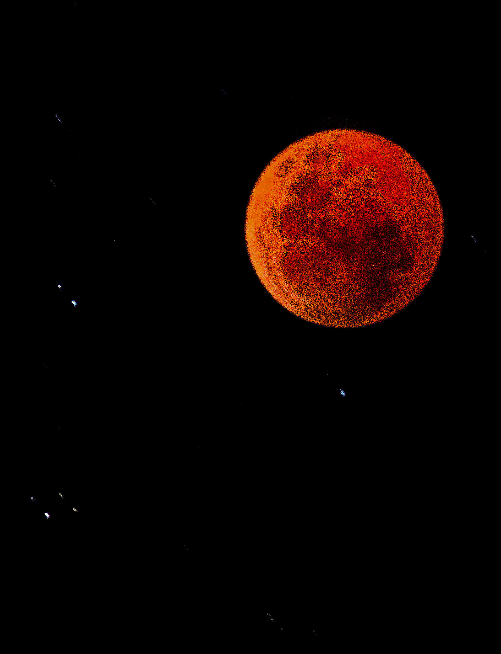 Here's an image of the "Blood moon" taken 15 minutes ago. Lots of noise, but I sort of like it