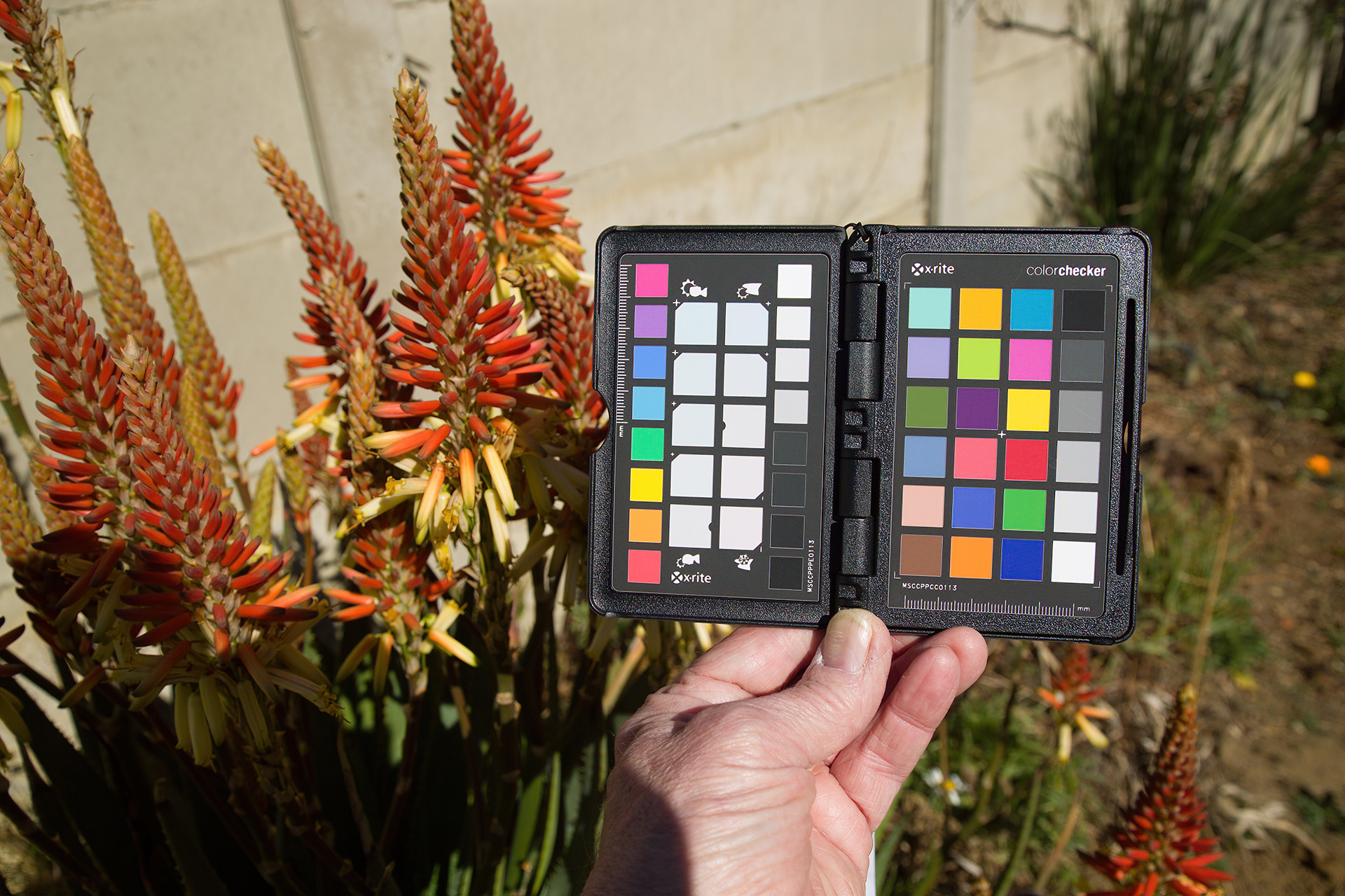 Here I've created an ICC profile from ON1 to X-checker program and applied it to the image. Everything look so much better here, except the wall is too yellow. The colour of my hand and the flowers is more realistic